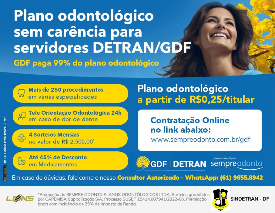 o SINDETRAN-DF acaba de celebrar uma parceria muito importante com a Sempre Odonto. Nela está incluso um plano odontológico 99% custeado pelo Governo do Distrito Federal (GDF).