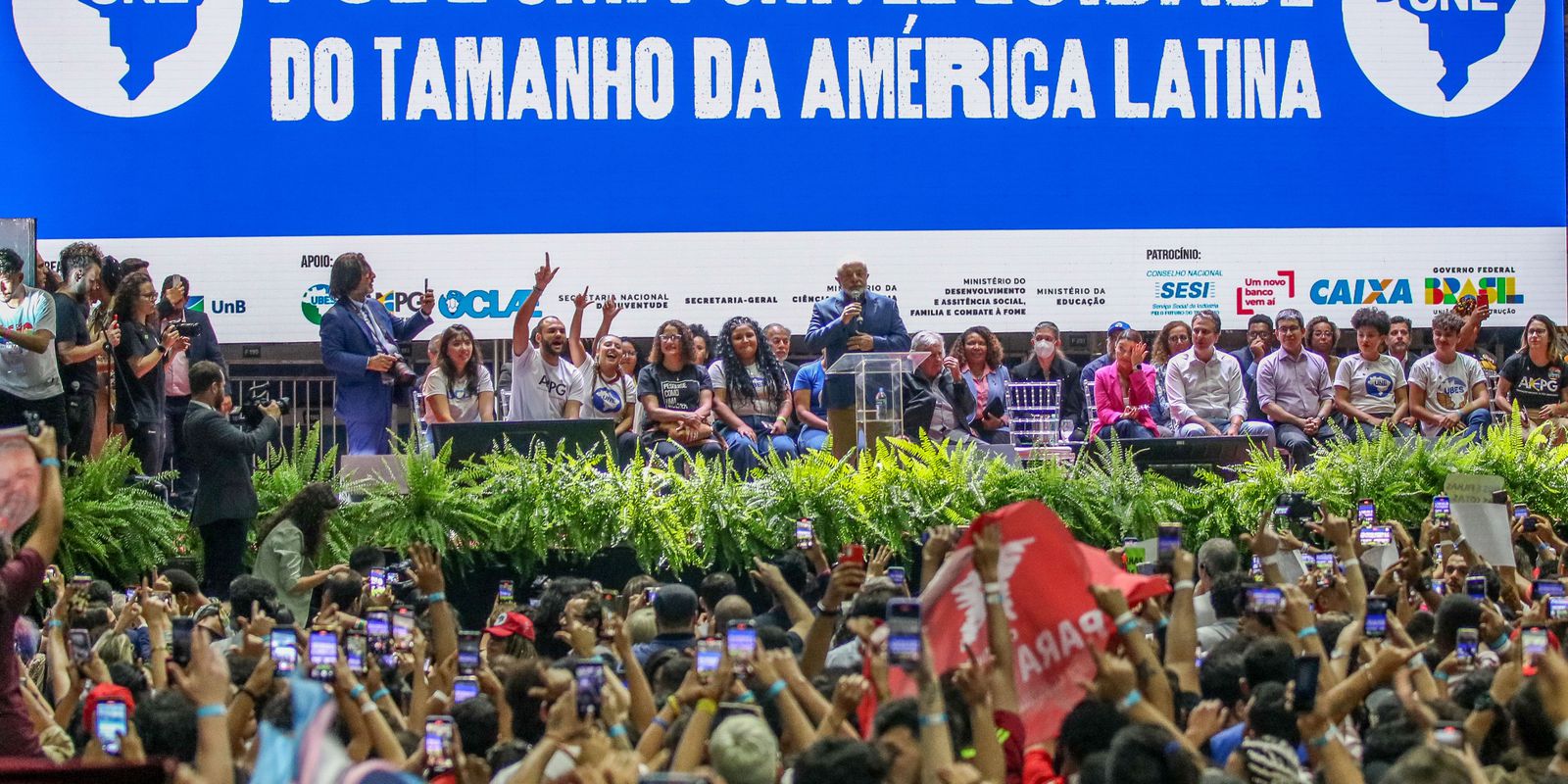 Em seu discurso, Lula também exaltou o vigor do movimento estudantil. “O que motiva a vida humana e o que motiva a nossa capacidade de ser melhor ou não é se a gente tem uma causa ou não tem uma causa”, afirmou. “Eu acho extraordinário a UNE apresentar uma pauta de reivindicações longa, árdua e apimentada”, acrescentou.